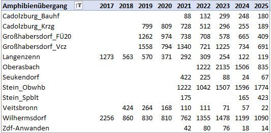 Amphibienstatistik 2025