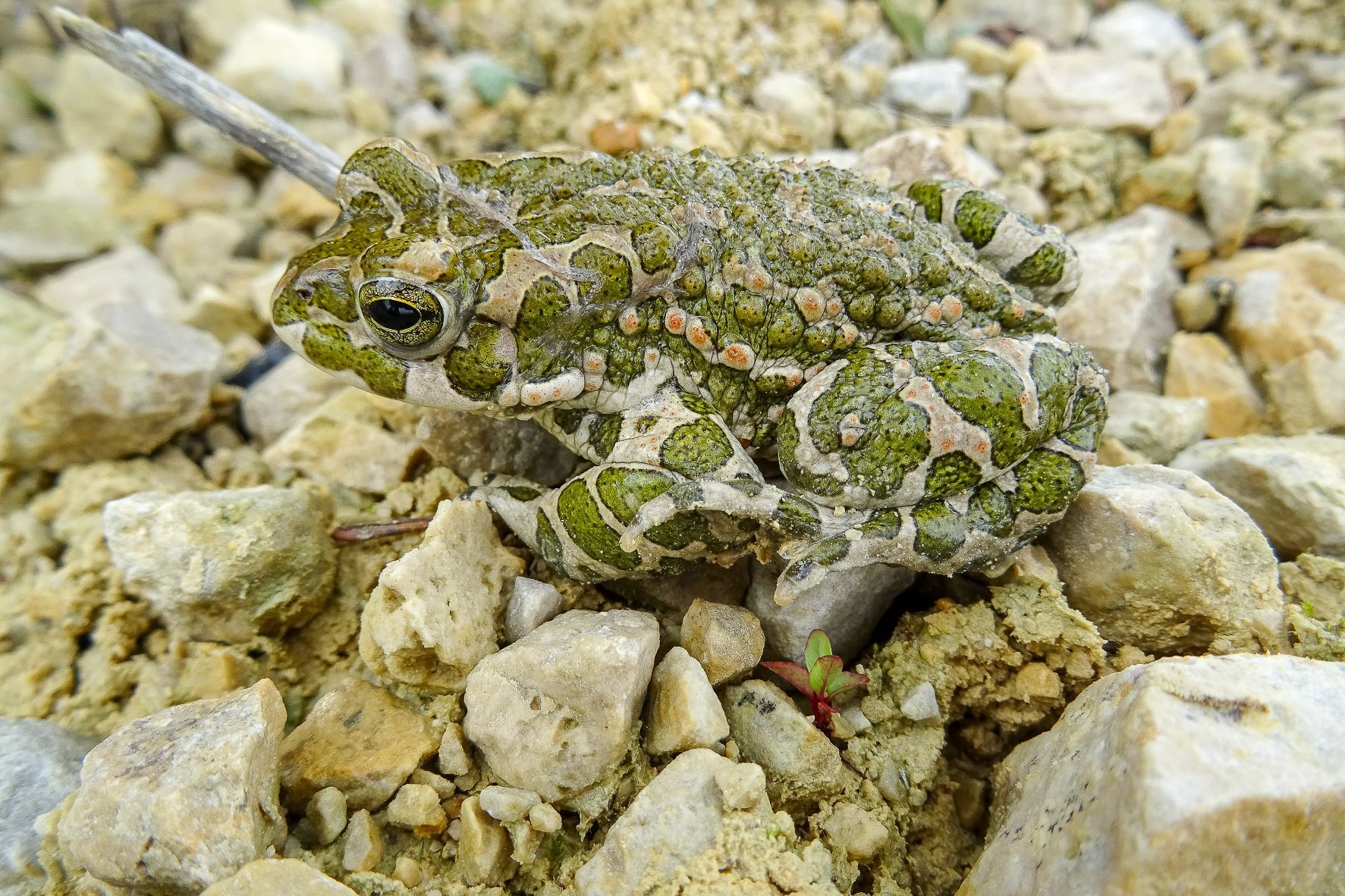 Die Wechselkröte (Bufotes viridis) ist an den grünen Hautflecken, die sich scharf von ihrer beigen Grundfärbung abgrenzen, zu erkennen („Grüne Kröte“). Indem sie die Farbintensität verändert, kann sie sich hervorragend an den Untergrund anpassen und ist in Ruhestellung schwer auszumachen. Wie die Kreuzkröte ist sie eine Pionierbesiedlerin und an Trockenheit und Hitze angepasst. Als Lebensraum bevorzugt sie sonnenexponierte, trockenwarme Habitate mit grabfähigen Böden und spärlicher Vegetation. In Bayern ist die Wechselkröte zu einer Kulturfolgerin geworden, da ihre Primärhabitate wie Auen und Kiesbänke nicht mehr existieren. Besiedelt werden Abbaustellen wie Kies-, Sand-, und Tongruben und Steinbrüche. Bis in die 1970er-Jahre war sie auch in Franken heimisch (GAUCKLER 1976). Wechselkröten sind dämmerungs- und nachtaktiv und graben sich tagsüber entweder im Erdreich ein oder suchen unter Steinen, Müll oder in Geröllhaufen Unterschlupf.