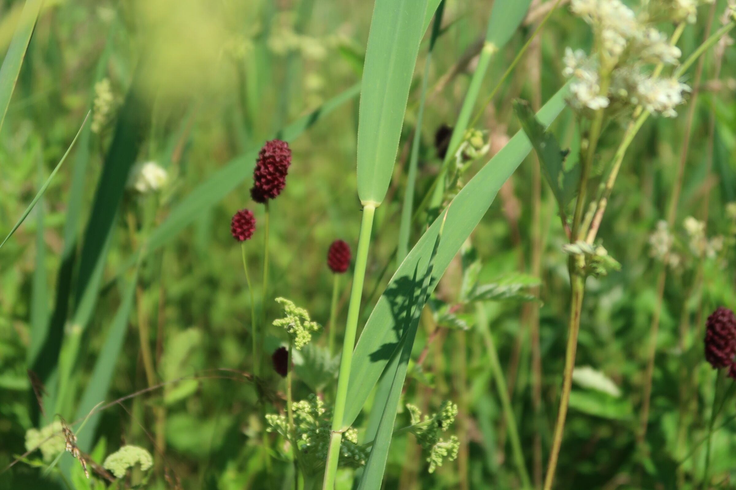 Zwei Biotope bearbeitet der BUND Naturschutz in Langenzenn auf diese Weise, eines am Laubendorfer Weg und eines am Alizberg. Aber warum mit solch altmodischen Mitteln? Dafür sprechen eine Reihe von ökologischen Vorteilen: Der Balkenmäher ermöglicht einen pflanzenschonenden Schnitt mit hoher Schnitthöhe (10 cm), wodurch auch die am Boden befindlichen Tiere (z.B. Eidechsen, Amphibien, Mäuse, Weichtiere, Raupen, Heuschrecken) verschont bleiben. Zudem erfolgt kein Häckseln des Schnittgutes - und der im Gras befindlichen Insekten - wie beim sonst oft üblichen Mulchen. Kleintiere haben bei der Aufnahme des Mähgutes mit der Heugabel die Möglichkeit zu fliehen, anders als beim automatischen Einsaugen durch eine Maschine. Der Balkenmäher ist relativ klein und leicht, wodurch die Bodenschichten locker, Luft und Wasser im Boden erhalten bleiben. Dennoch werden der Fläche Nährstoffe durch die zweimal im Jahr erfolgende Mahd entnommen, so dass sich hier andere Pflanzenarten als in den üblichen, nährstoffreichen Flächen ansiedeln können. Durch diese Art der Bearbeitung wird die lokale Artenvielfalt gefördert bzw. erhalten.