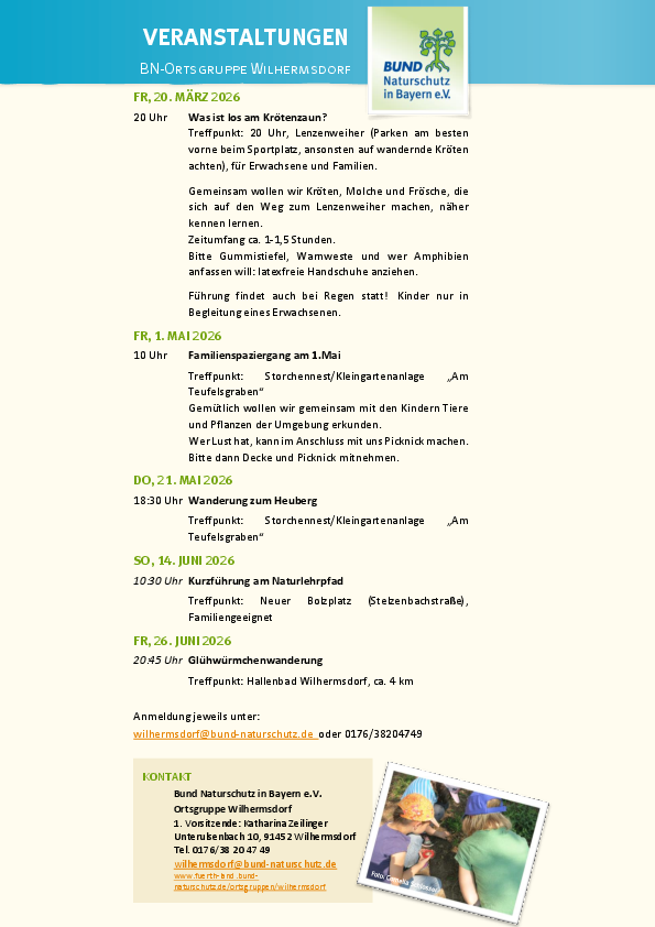 Infos und Anmeldung jeweils unter wilhermsdorf@bund-naturschutz.de :