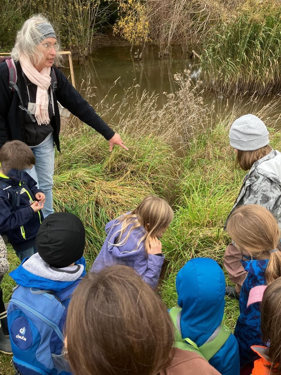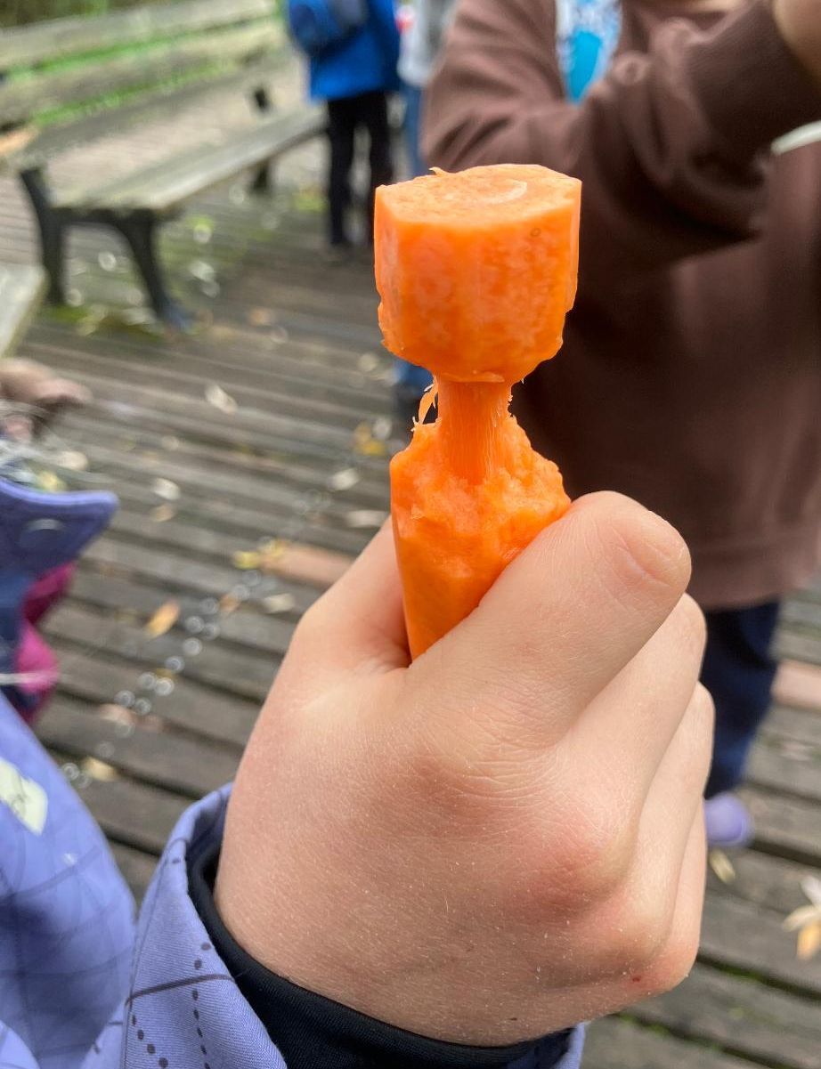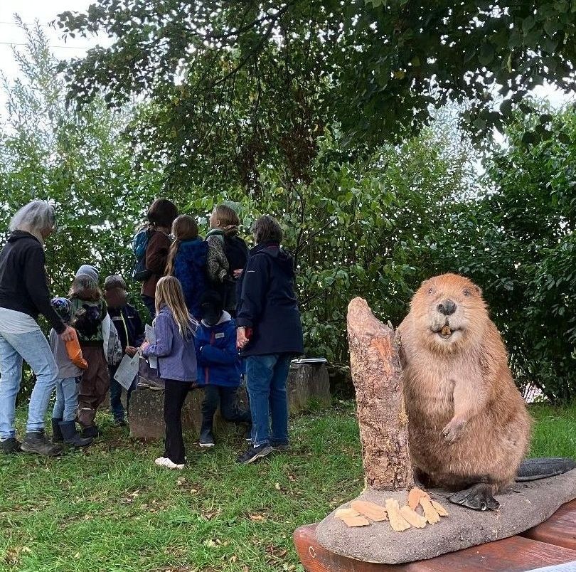 Wir waren fasziniert von den Spuren, die der Biber hinterlassen hat. Wir sahen Dämme, Biberrutschen und sogar eine riesige Biberburg. Gemeinsam haben wir über die Lebensweise und die Bedeutung des Bibers für die Natur gesprochen und erfahren, wie seine Bauwerke das Ökosystem bereichern. Mit einer kleinen „Bibermahlzeit“ in Form von Karotten und einem abschließenden Quiz, konnten alle Kinder ihr erworbenes Wissen testen. Und zum Schluss durften wir noch ein echtes Biberfell anfassen.