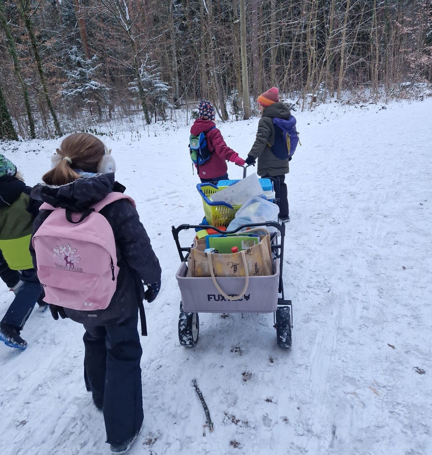 Januar 2026: Wir starten ins neue Jahr bei winterlichem Wetter mit einem Waldspaziergang mit Bollerwagen und viel Vogelfutter im Gepäck, dass von uns großzügig verteilt wurde. Anschließend durften wir auf der Rodelbahn noch rodeln und wärmten uns noch bei dampfendem Kinderpunsch im Bauwagen auf.