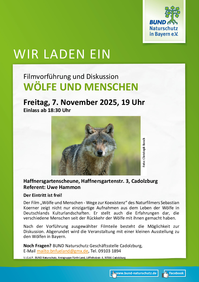 Abgerundet wird die Veranstaltung mit einer kleinen Ausstellung zu den Wölfen in Bayern.
